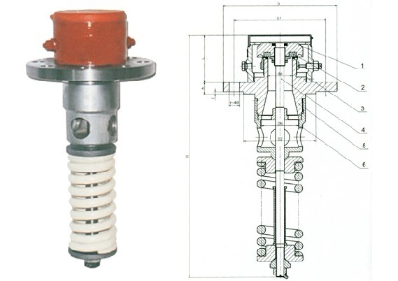 其彈簧是直接裸露在外面的,缺點(diǎn)一是在運(yùn)輸、安裝的過程中容易損壞,而且很容易被介質(zhì)腐蝕,導(dǎo)致整定壓力不準(zhǔn)確,嚴(yán)重時(shí)彈簧斷裂,介質(zhì)從閥口處泄漏,發(fā)生不可預(yù)料的后果。缺點(diǎn)二是當(dāng)內(nèi)裝式安全閥在開啟或關(guān)閉時(shí),下彈簧座與彈簧的伸縮引起的快速移動在液相介質(zhì)中產(chǎn)生很大的阻力,同時(shí)可能會產(chǎn)水擊現(xiàn)象,直接影響到閥門的整定壓力、啟閉壓力、開啟高度、回座密封性等性能。